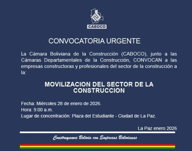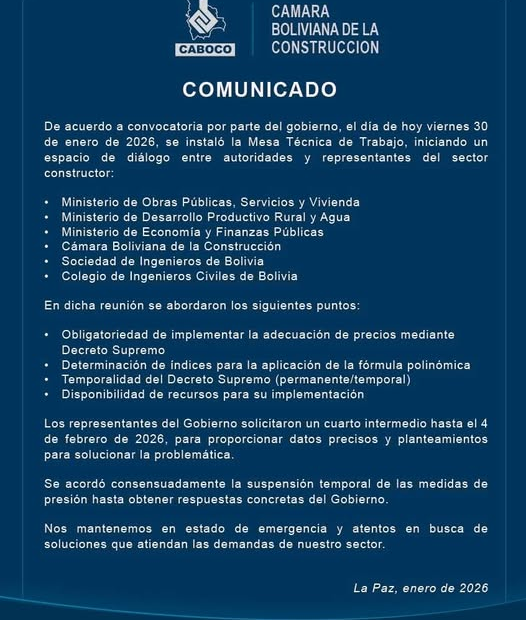 COMUNICADO CAMARA BOLIVIANA DE LA CONSTRUCCIÓN